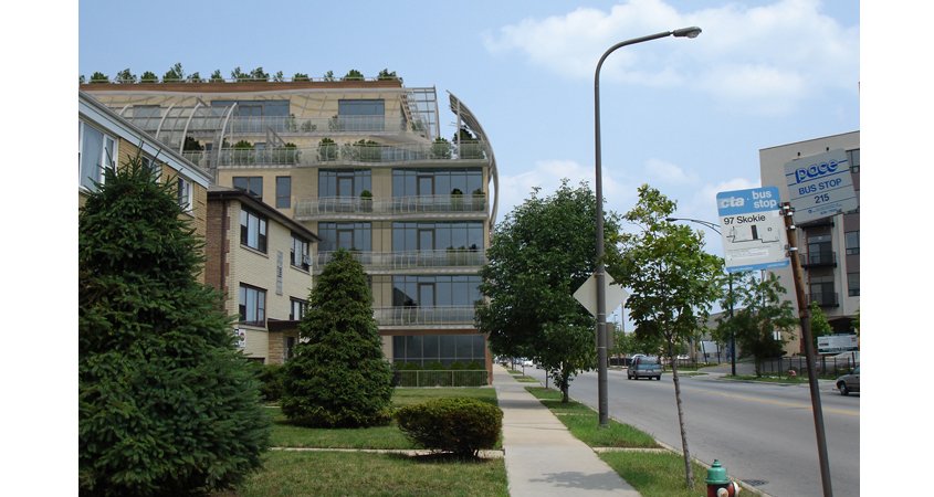 Archview Condominiums were designed for a site bordering Evanston and Rogers Park to be a unique mixed-use building. The Building is a 35,222 square feet, with two commercial of-ficeson ground floor, and 18 multi-family residential units and 2 penthouses. This building features roof top gardens, patios, and ornate arched screens that create a band-shell enclosed for the building.