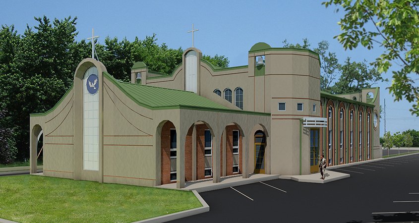 Going 50% beyond the normal commission, leading architect Paul N. Poloz designed the church to maximize simplicity and economy of design and construction, using precast concrete to express design innovation while preserving the integrity of the material. Creating a successful adjunct to the existing building ultimately involved a harmony of form, shape and materials.